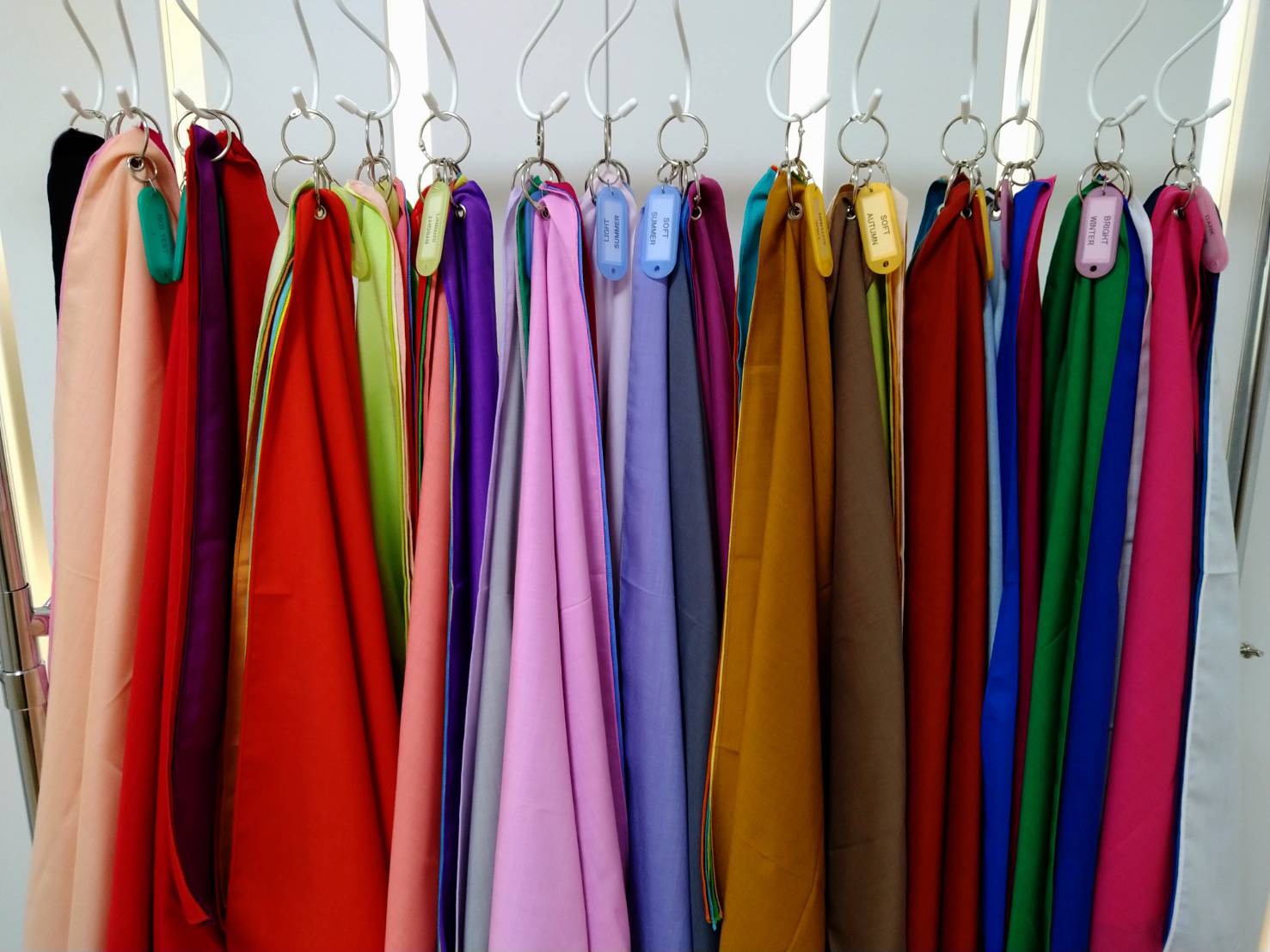 12種類のドレープを肩にのせて比較しながら診断するので、得意な色と苦手な色が