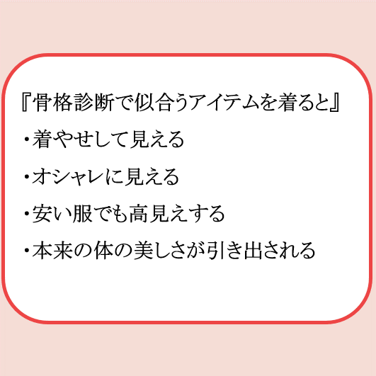 自分の長所を最大限に生かすコーディネートを考えられるようになります。