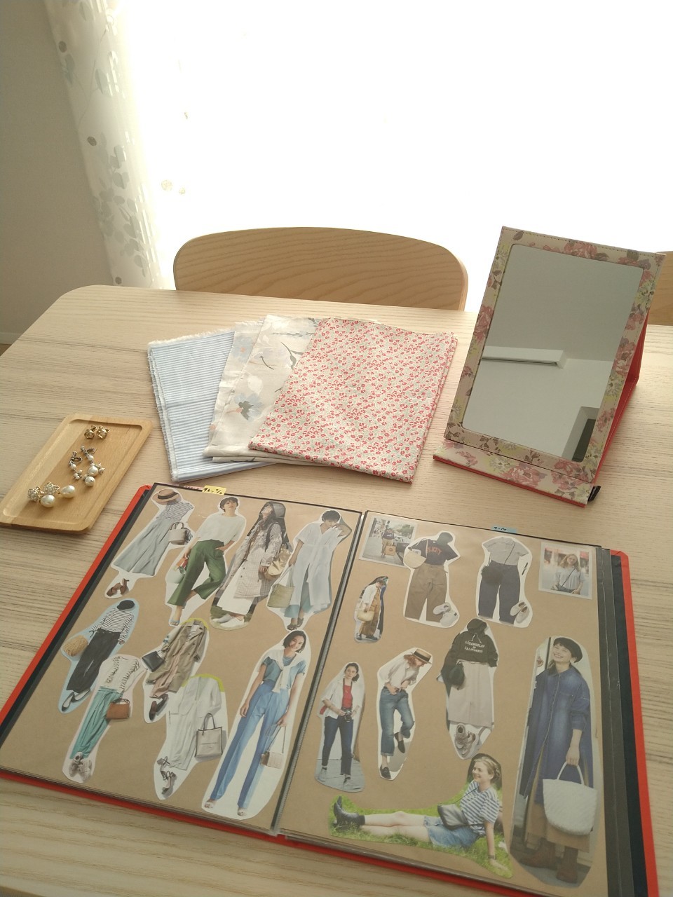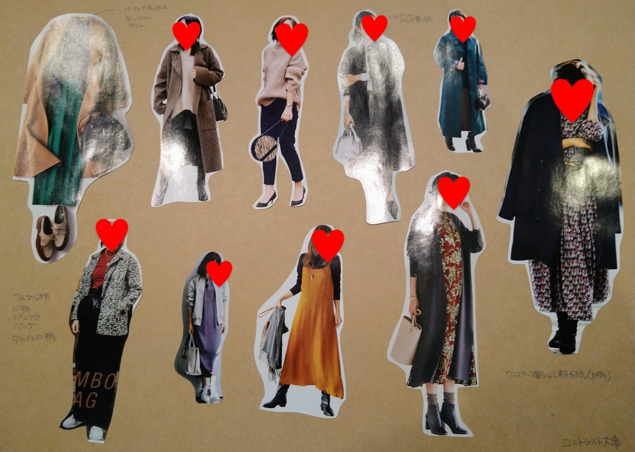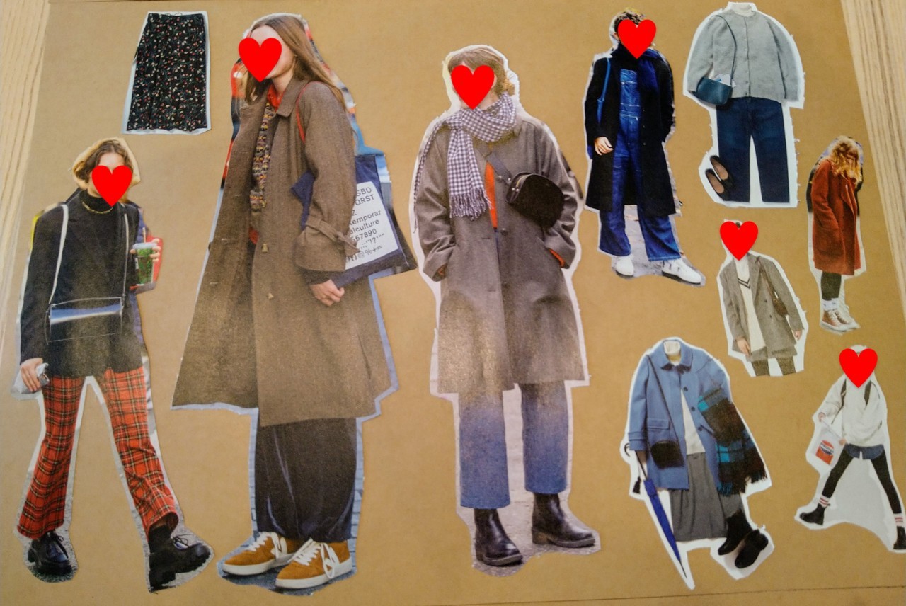 似合うコーディネートの中から、自分がしたいコーディネートを切り抜いて1枚の紙にまとめます。